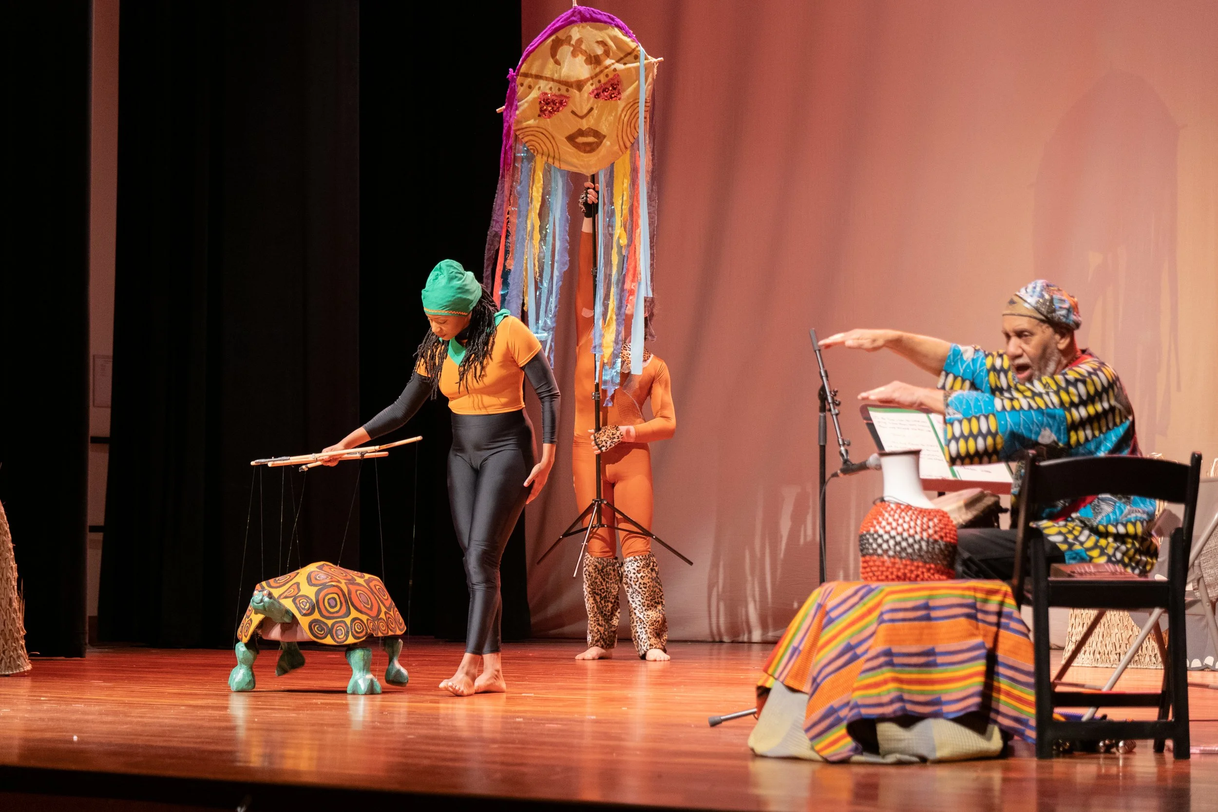 ANANSE the Spider has heard that NYAME THE SKY GOD has a pot of stories which contain all the wisdom in the world, and would like to have it, so that he can be truly wise! Nyame will give it to him if he can accomplish 3 challenging tasks.... Based on the Ananse Stories of West Africa and the Caribbean, this puppets and people musical written by Emelia Asiedu with music by Greg Alexander, teaches decision making skills and critical thinking, and the concept of storytelling as a way of sharing experience as a form of wisdom.