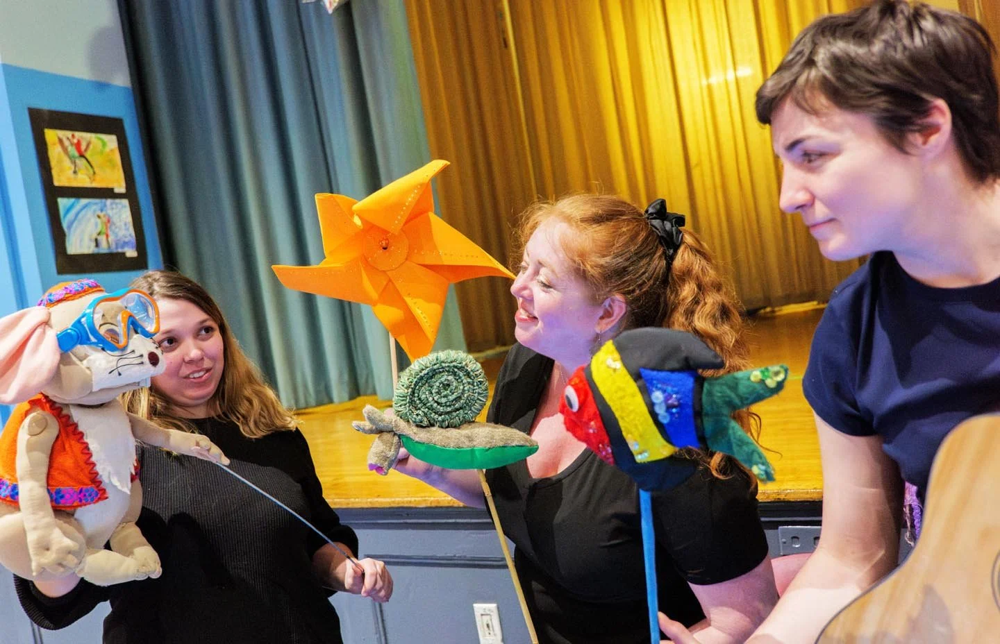 With several productions currently in our traveling repertoire, they're perfect for schools, community centers, or daycare/nursery facilities. Although we recommend these shows, which include a storyteller/puppeteer and a musician, for intimate settings like classrooms, libraries and playrooms, we also can accommodate and fully engage up to 80 children in a cafeteria, gym or auditorium.